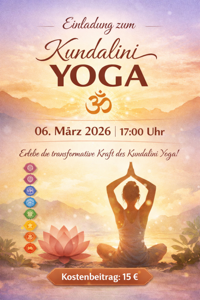 AllgemeinEinladung Kundalini Yoga – 06.03.26 https://www.yogi-gina-leela.de/wp-content/uploads/2026/01/yoga-einladung_03-26.png 1280 853 admin https://www.yogi-gina-leela.de/wp-content/uploads/2020/10/logo_yogi_2020-300x221.png admin2026-01-12 14:39:552026-01-29 13:55:45Einladung Kundalini Yoga – 06.03.26